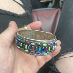 Taxco sterling silver 925 multi stoned hinged cuff bracelet$300Audubon, NJ
