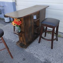 Nice Well Made Brown Wooden Island Bar With Three Stools And Storage Plus 4- Shelves Like New. $200Williamstown, NJ