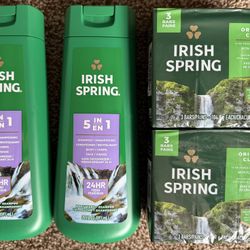 Irish Spring Bundle - (2) 5-in-1 24-h Body Wash Shampoo, (2) 3-Packs Original Bar Soap - Retail $23$10Castle Shann, PA