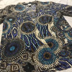 Chicos Lace Mesh Bohemian Blue Black Artsy Cardigan Size XL (Size 3) 3/4 Sleeve Add an effortless statement layer to your wardrobe with this beautifu$10Pittsburgh, PA