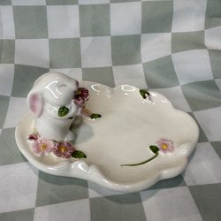 Vintage 1985 Avon Bunny Trinket Dish Weiss Brazil Porcelain Rabbit Floral$10Noblestown, PA