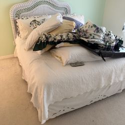 Full Bed With White Wicker Headboard, Frame And Box Spring$120Freedom, PA