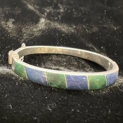 Vintage Taxco 950 Sterling Silver, Lapis Lazuli & Malachite Inlay Hinged Bracelet.$46Pittsburgh, PA