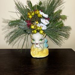 Holiday Christmas Floral Arrangement Fresh Evergreens Silk Vintage Cat Planter$23Pittsburgh, PA