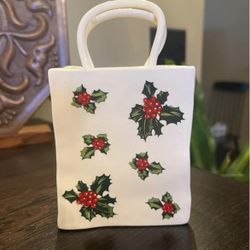 Vintage Lefton Ceramic Christmas Shopping Bag Vase Holly Berries Pattern$10Pittsburgh, PA