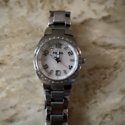 Fossil Watch Women Silver Tone Date Pink MOP Pave Bezel 100M Needs Battery$20Pittsburgh, PA