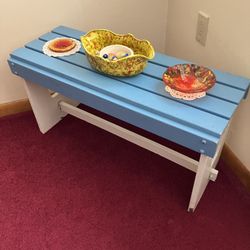 Decorative Painted Wooden Bench - $15.00 (green 2-handled bowl- $5.00)$15Finleyville, PA