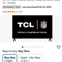 TCL 32" Smart Roku TV (1080p Full HD) - $75$75Pittsburgh, PA