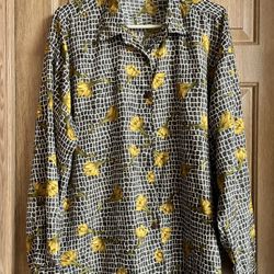 3X size Satin Blouse Beige Framed Brown Squares Yellow Flowers$5No Huntingdon, PA