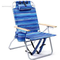 17" Heavy Duty Beach Chair with Wooden Armrests & Cooler Pouch in Striped Blue$30Emmaus, PA
