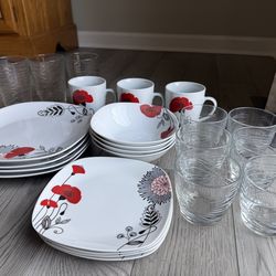 Red Glazes By Doublewhale Dinnerware Set And Libbey Orbita Tumbler And Rocks Glass$15Denver, PA