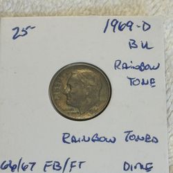 1969-D ROOSEVELT DIME(Rainbow Colors)$15Dauberville, PA