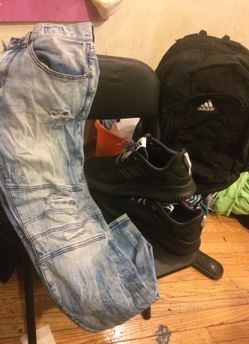 Biker jeans 40$ Adidas Alpha Bounce 70$ Adidas Bookbag 30$$140Philadelphia, PA
