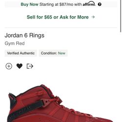 Jordan 6 Rings Gym Red$25Allentown, PA