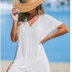 CUPSHE Women's V-Neck Button Pocket Cover-Up Dress - Small - White$20Allentown, PA