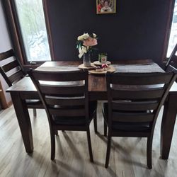 Raymour & Flanigan Extendable Dark Wood Rectangle Farmhouse Dining Table PLUS 4 Chairs And Bench$400Hawley, PA