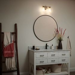 The Kichler 55120NI Stamos 2-Light Vanity Light is a 13-inch, brushed nickel bathroom fixture featuring a modern, soft design with satin-etched glass $50Edwardsville, PA