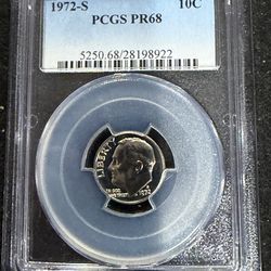 1972 S Gem Proof Roosevelt Dime Graded By PCGS At PR68 5-8$12Port Griffith, PA
