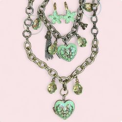Green Heart Locket Charm Necklace Set - Women Jewelry$20Hackettstown, NJ