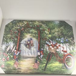 NEW 24×16 Patriotic Canvas – Red Bike, Flags & Garden Gate Lights Up $22$22York Haven, PA