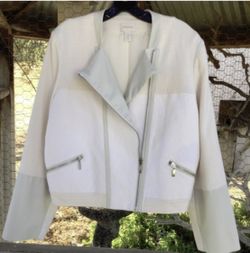 Chico's Moto jacket winter wheat cream fits size 14 blazer Asymmetrical zip up$25Mechanicsburg, PA