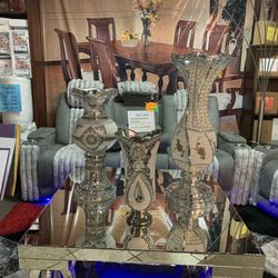 Luxury Mirrored Crystal Floor Vase Set - Piece Glam Decorative Vase$10Harrisburg, PA