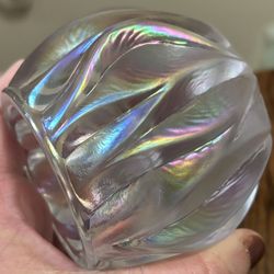 White Carnival Glass Pearlized Iridescent Reversible Votive Candle Holder Paperweight $20Hanover, PA