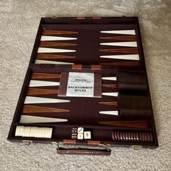 Backgammon Set Faux Leather Travel Case Brown/Cream Checkers 5 Dice 70s/80s Vintage$40Hanover, PA