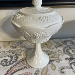 Indiana Glass, Milk Glass, "Wedding" Compote with Lid. Harvest Grapes Pattern$15Warwick, RI