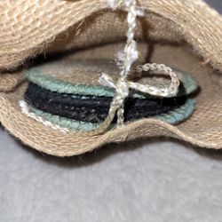 Creative Co-Op Round Seagrass Burlap Bag (Set of 4 Coasters, Green, 4 Count