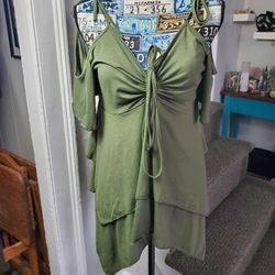 OLIVE GREEN CD SHOULDER TIERED RUFFLE HANDKERCHIEF HEM TOP!$25Taunton, MA