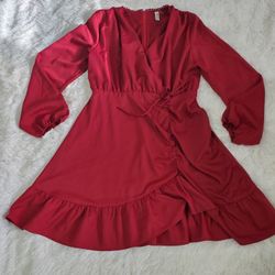 CRANBERRY DETAILED V-NECK RUFFLE WRAP LINED DRESS !$25Taunton, MA