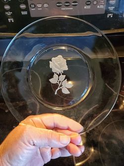 3 pretty clear glass 8 inch plates with a different etched center$15Cranston, RI