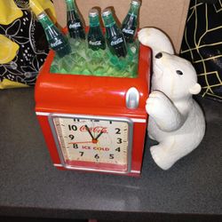 VINTAGE COCA COLA CLOCK AND BANK WITH POLAR BEAR Working Condition Collectable $39Lincoln, RI