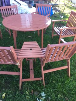 Solid Wrought Iron and walnut wood Bistro table w/4 WI padded chairs$400Walpole, MA