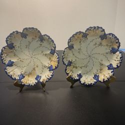 Antique 1910’s Decorative Cobalt Blue Gold Gilt 2 Scalloped Floral Plates Bowls 2 plates, unique scalloped octagonal shape, intricate florar motif wit$40Natick, MA