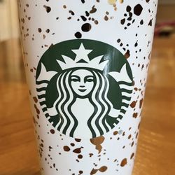 Starbucks Ceramic 12 ozTumbler White with Gold Confetti. Used. MISSING LID.$15Cranston, RI