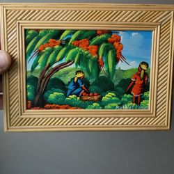 Original Oil Haitian Artwork 2 Ladies Picking Fruit Signed $29Lincoln, RI