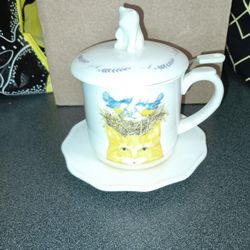 Vintage China Tea Set Cats And Birds Beautiful Item Very Clean $15North Smithfield, RI