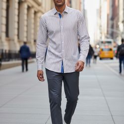 Hugo Boss Men’s White Blue & Red Stripe Dress Shirt Regular Fit Size 17.5/34-35$29Wellesley, MA
