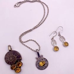 VTG Sterling Silver Jewelry Pendants Necklace Earrings Citrine Ammonite Fossil$80North Smithfield, RI