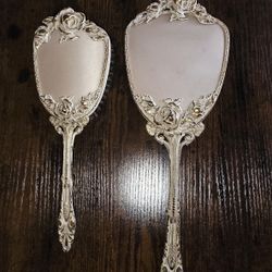 vintage vanity mirror and brush pewter beveled glass ornate$80Chepachet, RI