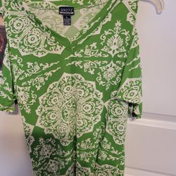 Green Printed stretch Blouse By UNITY Cut Out Shoulder$9Piedmont, SC