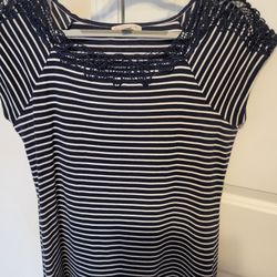Nautica Ladies Shirt Stripe Blue& White MED Short Sleeves$10Piedmont, SC