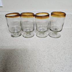 Set Of 4 Mexhandcraft Mexican Hand Blown 5" Footed Tumblers With Amber-Brown Rim$35Easley, SC