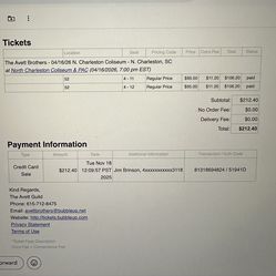 Avett Brothers tickets 4/16/26$200Charleston, SC