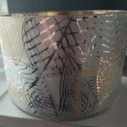 Yankee Candle Jar Shade Barrel Linear Leaves holder with a gold and silver design on a white background. $25Summerville, SC