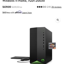 HP Gaming R5 RX 5500 Gaming Desktop, AMD Ryzen 5-5600G, AMD Radeon RX 5500, 8GB RAM, 256GB SSD, Black, Windows 11 Home, TG01-2003$550Mount Pleasant, SC