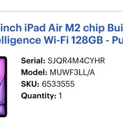 iPad Air m2 chip$450Charleston, SC