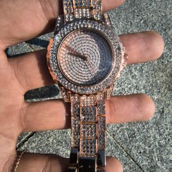 Rose gold tone iced out watch.$10Columbia, SC